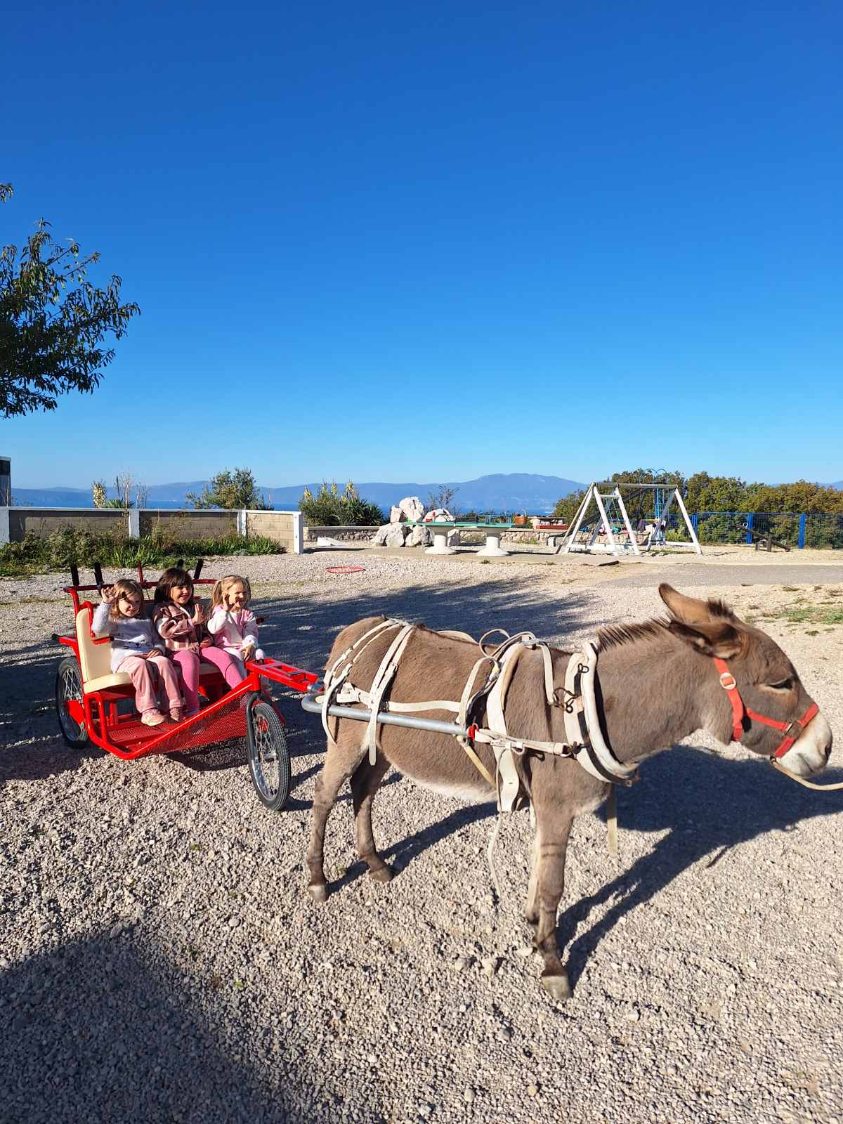 Ovog prekrasnog, sunčanog jesenskog dana, posjetili smo Farmu magaraca Šmrika (OPG Lucić), gdje su djeca doživjela niz zabavnih i edukativnih iskustava. Djeca su imala priliku upoznati ove prekrasne životinje, naučiti gdje i kako žive. Djeca su u neposrednom kontaktu hranili magarce, mazili ih i timarili. Djeca su imala priliku i jahati magarca 🫏 što ih je posebno razveselilo 😃. Također su se vozili u kočiji koju je vukao magarac.